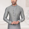 The intricate floral woven design on the kurta pajama is crafted using jacquard weaving techniques. This traditional yet sophisticated design brings depth and detail to the garment, making it suitable for special occasions where a more polished look is required. The woven floral patterns add texture and richness, elevating the overall appeal of the outfit without overwhelming its simplicity. The subtle beauty of this work speaks to refined taste and craftsmanship.Vibrant Silver/Grey Color