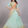 The sky blue color of this lehenga exudes freshness and elegance. Sky blue is a versatile shade that complements various skin tones and is perfect for both daytime and evening events. The soft yet vibrant hue adds a touch of modernity to the traditional outfit, making it a perfect choice for contemporary women. This color, combined with the intricate work and luxurious fabric, creates a visually stunning ensemble that is sure to turn heads.
