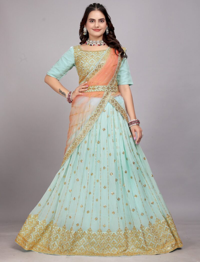 Sky Blue Georgette Lehenga: A Stunning Blend of Tradition and Glamour