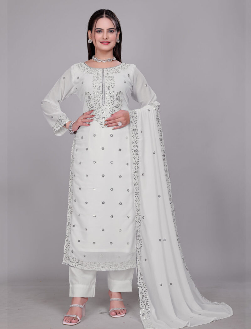 White Embroidered Georgette Suit