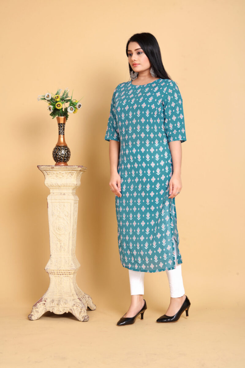 Teal Printed Cotton Kurti: A Blend of Elegance and Comfort