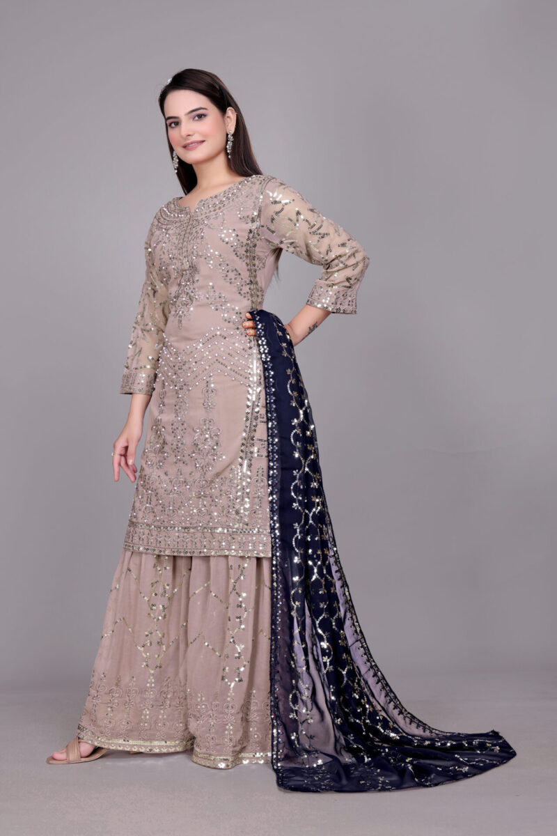 - Gharara Fabrics :Heavy Faux Georgette With 5mm Embroidery Sequence Work
