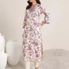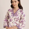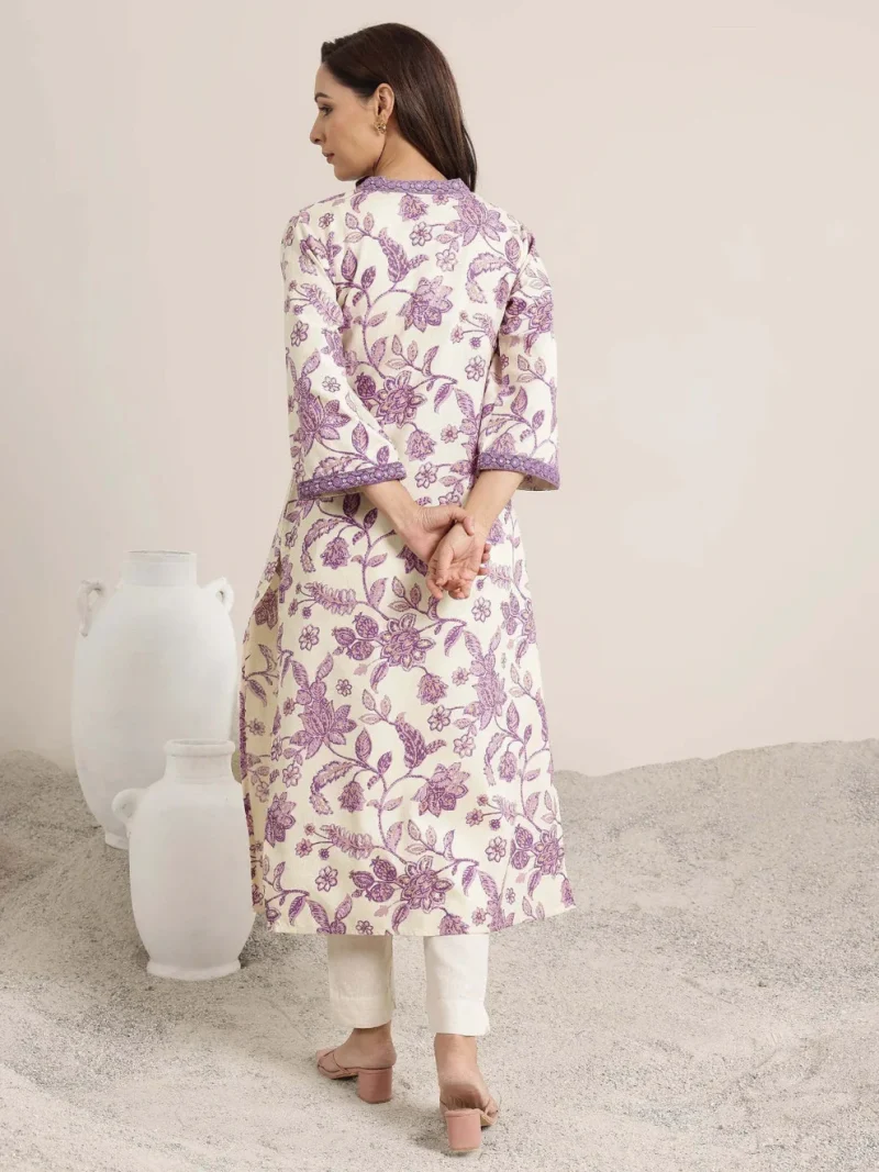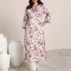 V Neck Embroidered Viscose Rayon Purple Kurta
