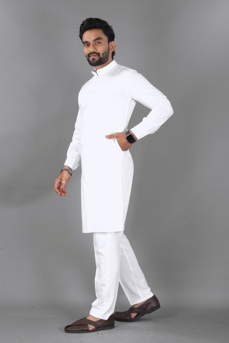 The white cotton kurta pajama has been a staple of Indian tradition for centuries. White signifies purity, humility, and peace, making this outfit a popular choice for spiritual occasions. Men wear it during religious ceremonies, family events, and formal gatherings to showcase elegance with simplicity. It connects generations through culture while remaining fashionable in modern times.
