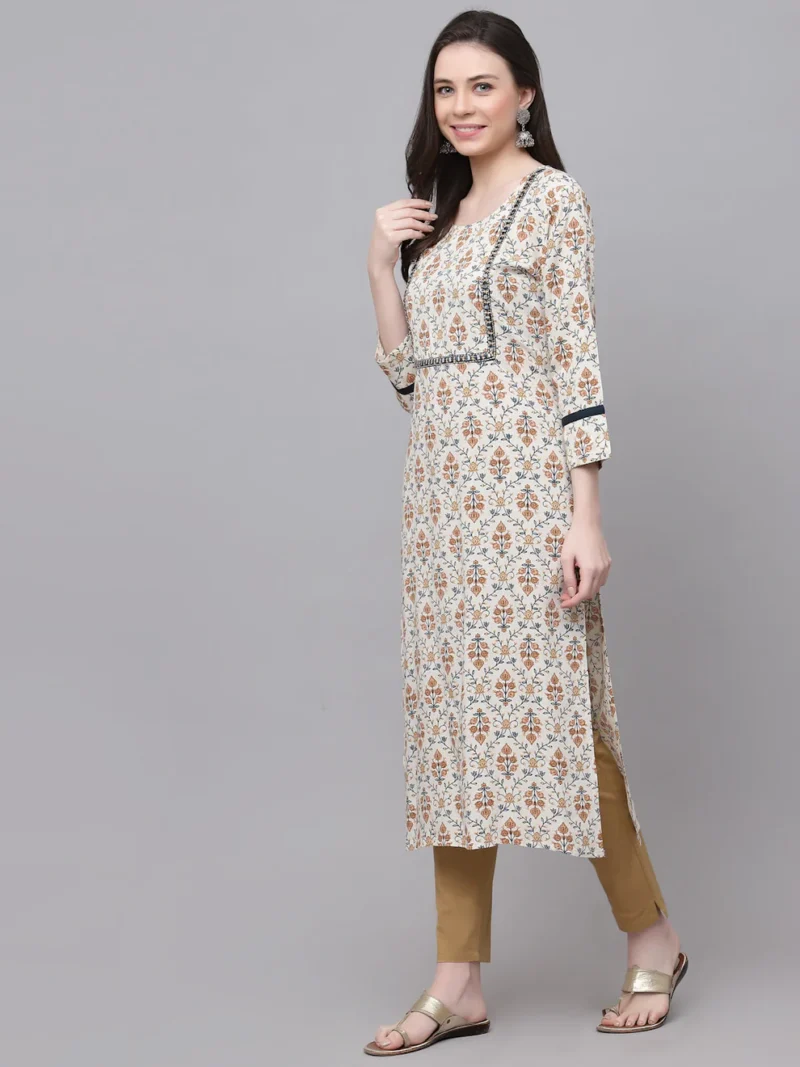 White Printed Rayon Kurta Women beautifully encapsulate the essence of Indian tradition while embracing modern aesthetics. Their intricate designs and lightweight material make them an enduring symbol of grace and comfort.Occasions to Wear a White Printed Rayon Kurta