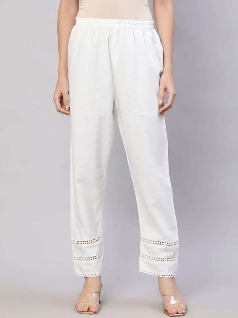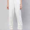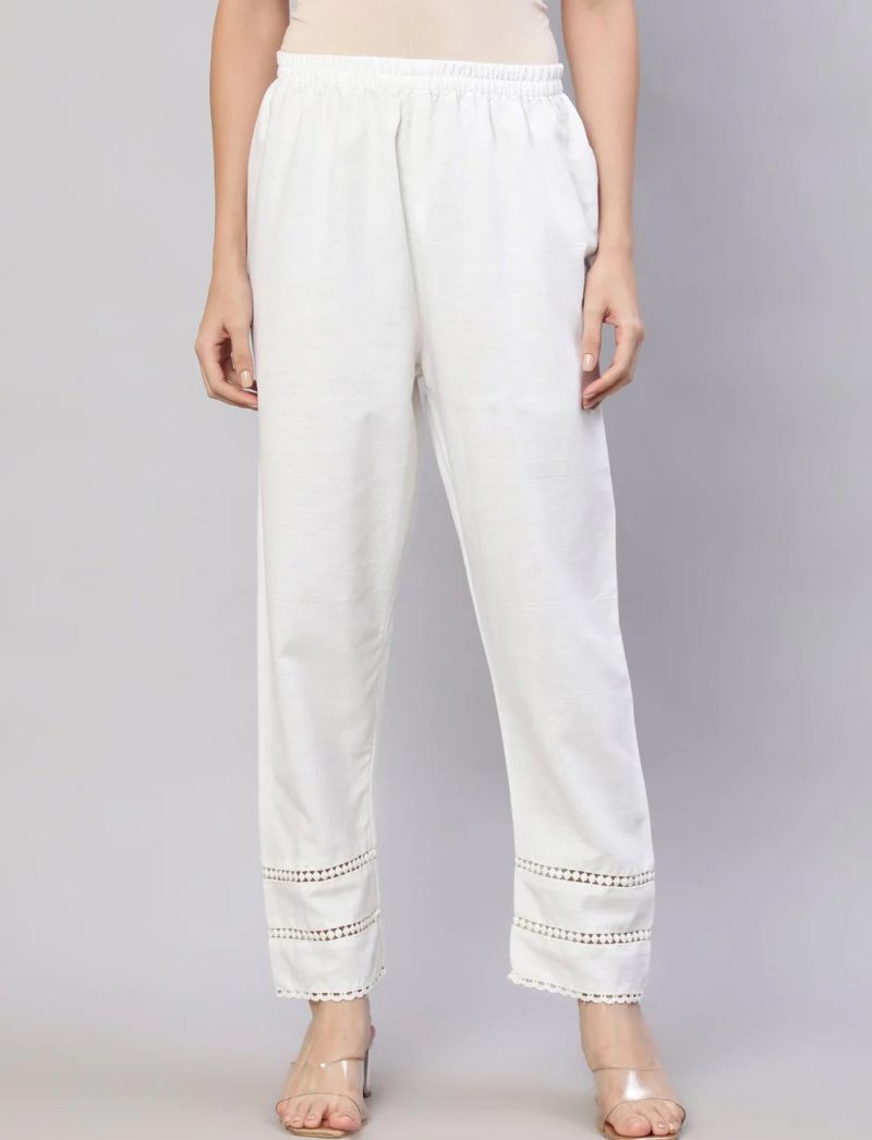 White Solid Pant With Lace Details