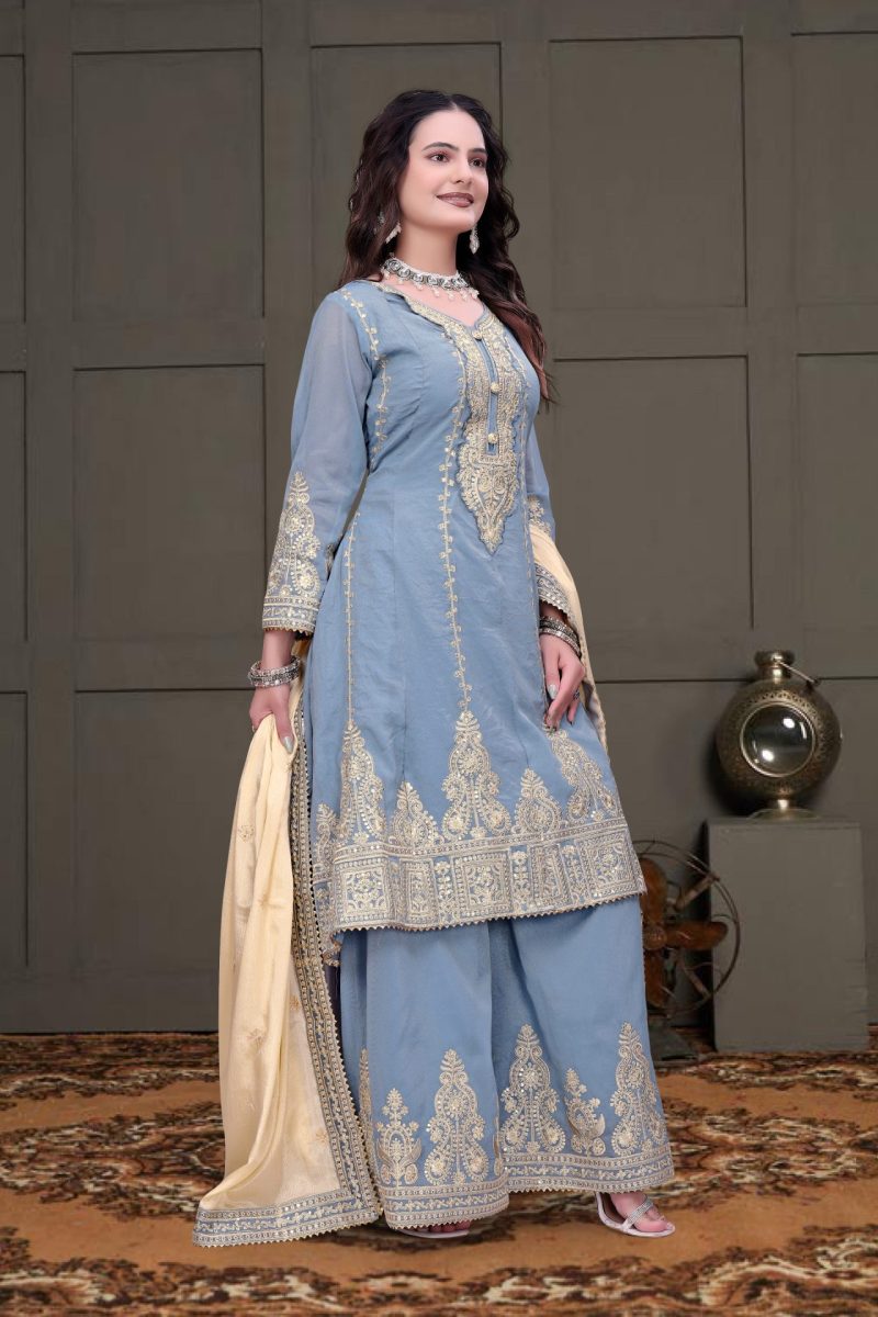 - TOP :- Heavy Simar Orgenza With Codding Sequence Embroidery Work