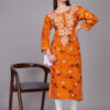 Add a splash of sunshine to your ethnic wardrobe with this Yellow Lucknowi Embroidered Kurti, a radiant piece designed to reflect elegance and tradition. The rich yellow hue radiates warmth, while the hand embroidery and printed ghass patti work showcase the beauty of skilled artisanship.